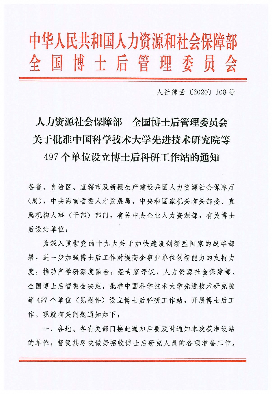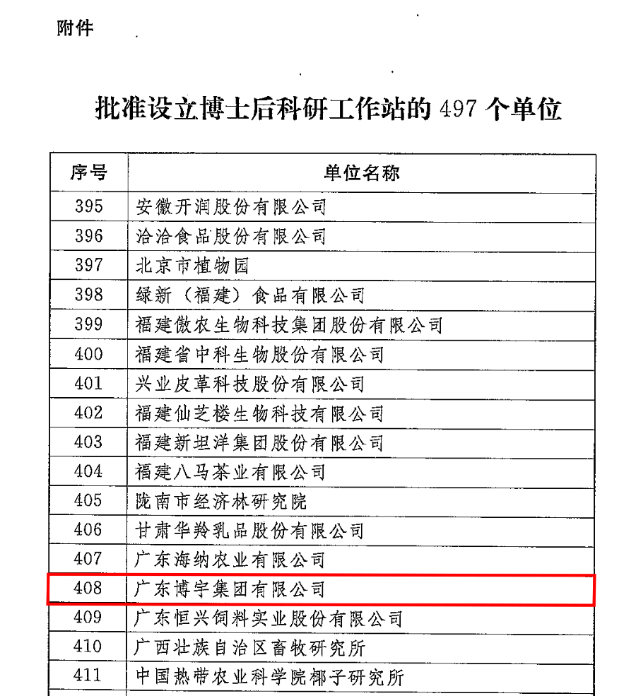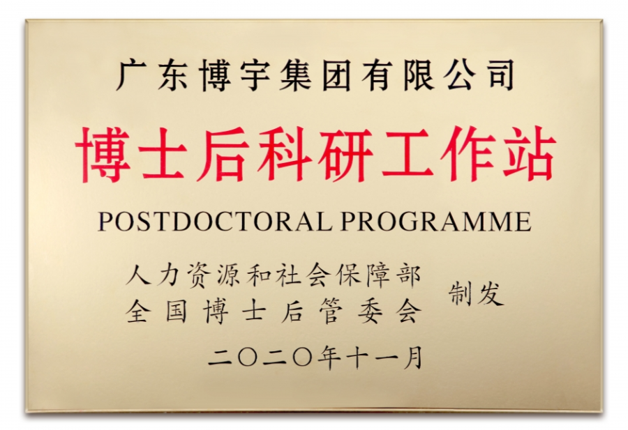 2020年11月27日,根據(jù)人力資源和社會保障部、全國博士后管理委員會《關(guān)于批準(zhǔn)中國科學(xué)技術(shù)大學(xué)先進(jìn)技術(shù)研究院等497個單位設(shè)立博士后科研工作站的通知》(人社部函〔2020〕108號),廣東博宇集團(tuán)有限公司獲批設(shè)立博士后科研工作站。