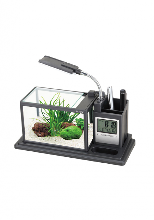 低噪聲潛水泵, 內(nèi)置底部過濾,清潔水質(zhì)污物及培養(yǎng)有益細菌(硝化細菌),LED臺燈,電子萬年歷,筆筒為一體的多功能筆筒;