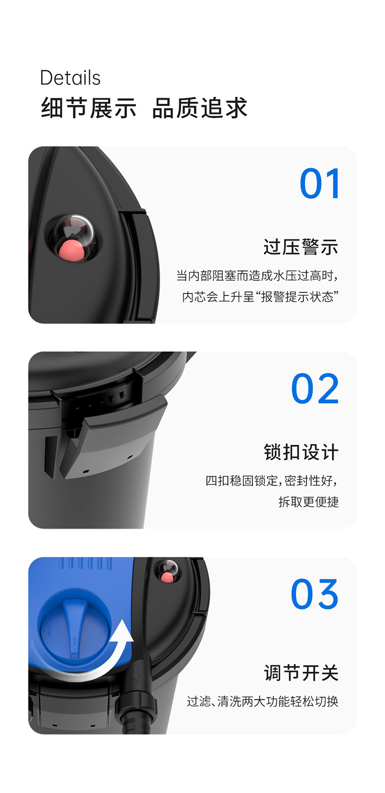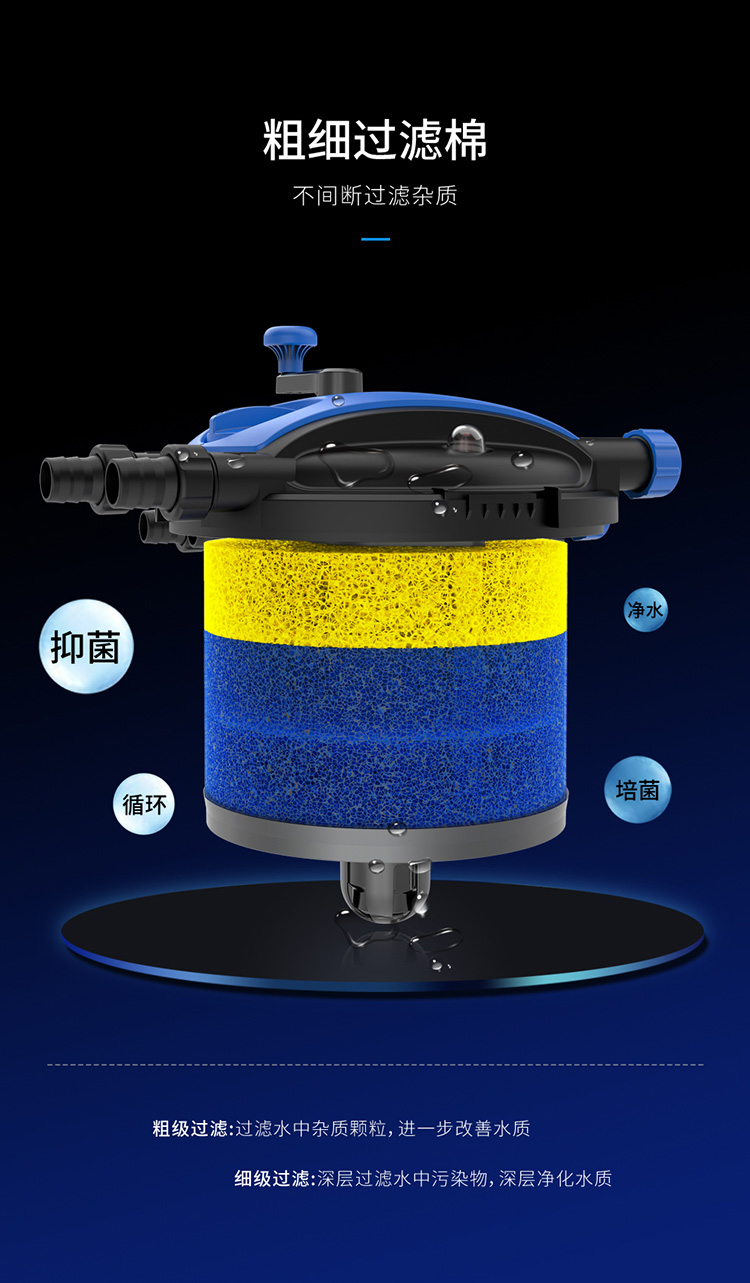 內(nèi)置多種生化過濾材料,有效降解水中的硝酸鹽、磷酸鹽,分解水中多余養(yǎng)分,保證水體清澈。