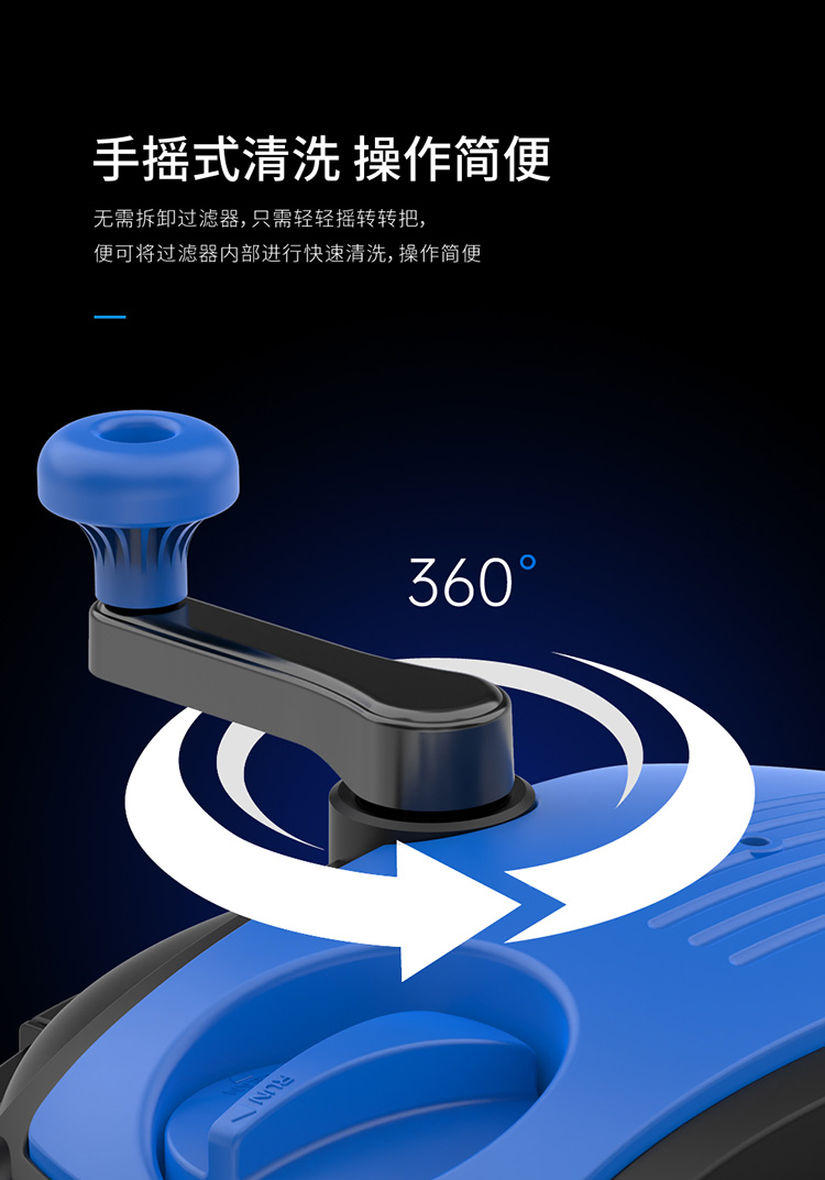 免拆洗設(shè)計,手搖擠壓清潔機(jī)構(gòu),能將生化棉中的污物擠壓脫落,反沖洗水流將污物排除,維護(hù)更方便;